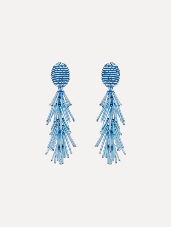 Make a stunning statement with these exquisite tassel earrings that feature cascading strands of luminous blue beads, meticulously crafted to shimmer and dance with your every movement. The elegant beaded post adds sophisticated texture, delivering instant glamour to both casual and formal ensembles.