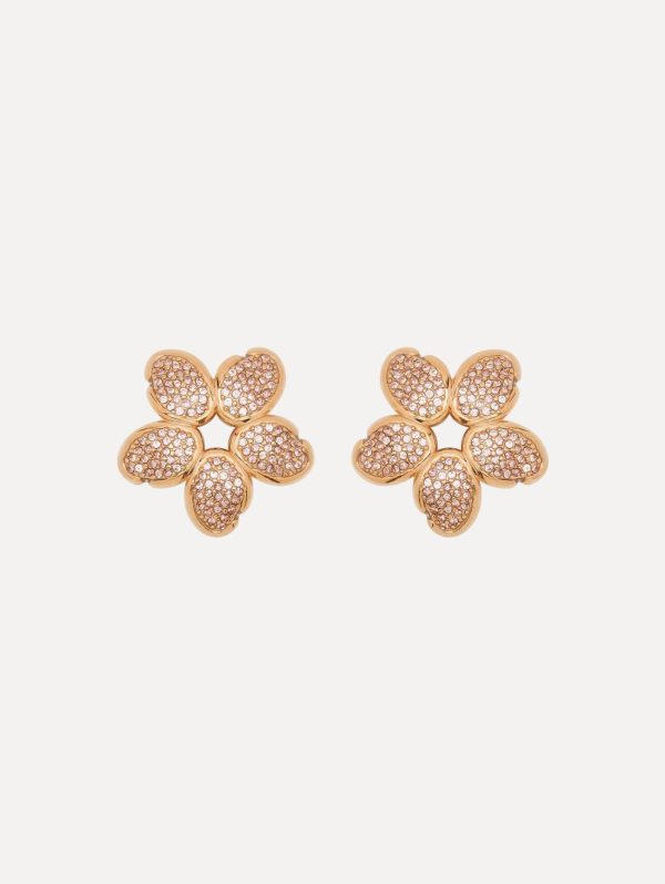 Elevate your style with these exquisite Oscar de la Renta earrings, designed for the sophisticated modern woman. The iconic ‘O’ emblem transforms into an elegant floral motif, meticulously adorned with brilliant glass crystals that catch the light beautifully. Perfect for showcasing with updos and special occasion hairstyles, these statement earrings add instant glamour to any ensemble.