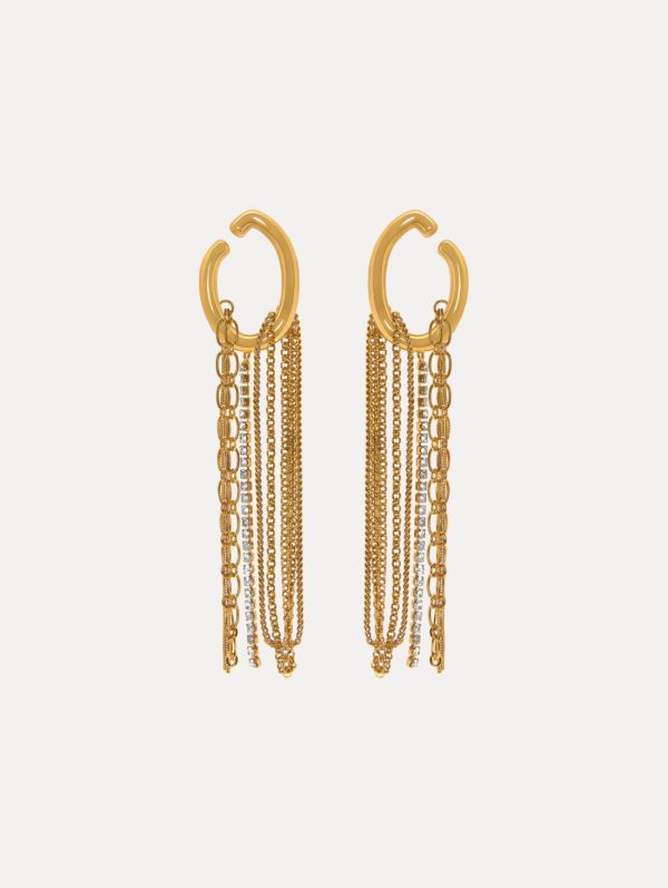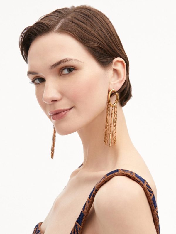 Make a sophisticated statement with these exquisite earrings featuring Oscar de la Renta’s signature ‘O’ emblem, beautifully accented with cascading chain and crystal fringe that moves with graceful elegance. The designer fringe creates captivating movement while the iconic brand symbol delivers instant luxury recognition.