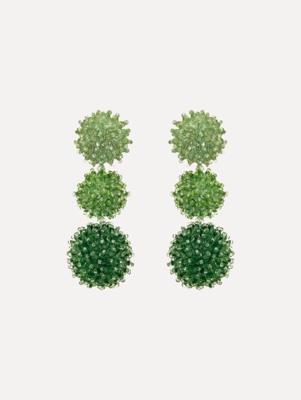 Make a vibrant statement with these eye-catching drop earrings featuring three beautifully arranged domed clusters crafted from delicate beads. The dynamic design creates captivating movement, bringing a playful yet sophisticated energy to your ensemble.