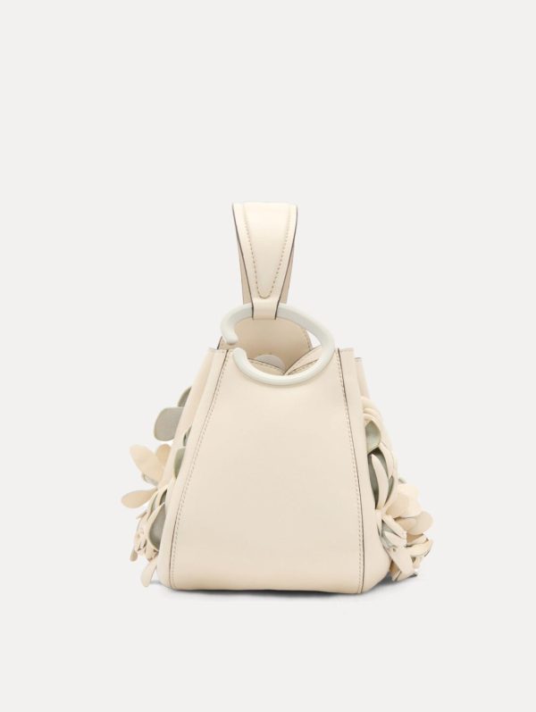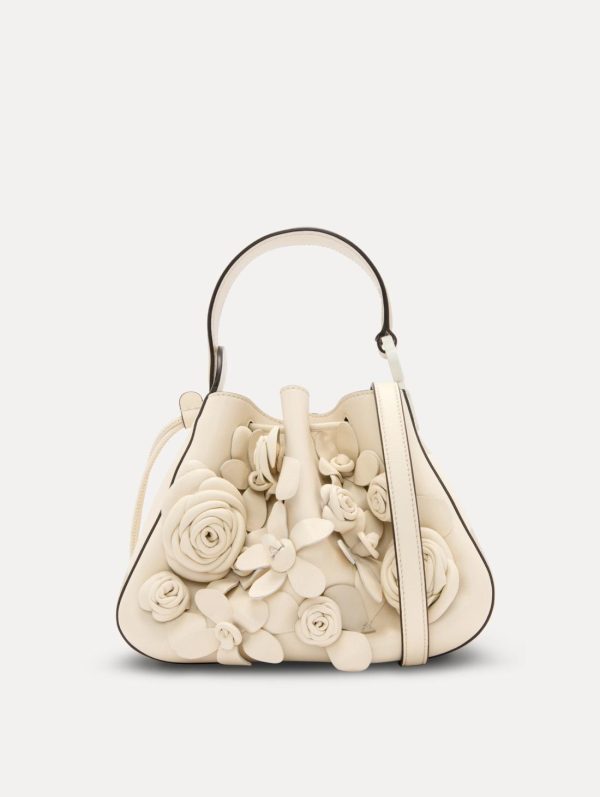 Exquisite three-dimensional leather blossoms adorn the iconic O Handle bag, creating a stunning visual statement. Crafted in an elegant top handle silhouette featuring a secure drawstring fastening and versatile detachable shoulder strap, this sophisticated piece effortlessly transitions from daytime elegance to evening glamour.