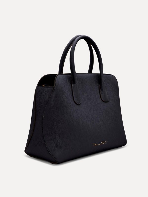 Experience the perfect blend of elegance and functionality with this premium handbag, designed with a roomy main compartment that offers exceptional organization. The versatile carrying options include both top handles and a detachable shoulder strap, allowing you to customize your look for any occasion. Signature Oscar de la Renta ‘O’ emblems adorn both the hangtag and magnetic closure, while the bag’s beautifully curved seams mirror the iconic logo’s graceful lines for a sophisticated brand statement.