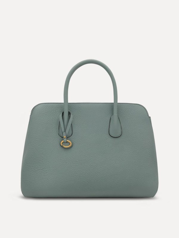 Experience the perfect blend of elegance and functionality with this sophisticated handbag, designed with a generously sized main compartment that accommodates all your essentials. The versatile carrying options include both top handles and a detachable shoulder strap, allowing you to customize your look for any occasion. Signature Oscar de La Renta ‘O’ emblems adorn both the hangtag and magnetic closure, while the bag’s gracefully curved seams pay subtle tribute to the brand’s iconic logo design.