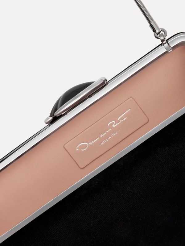 Elevate your evening ensemble with this exquisitely crafted clutch featuring a sophisticated structured design. Draped in sumptuous velvet with the signature Oscar de La Renta ‘O’ emblem at the clasp, this piece showcases the brand’s legendary craftsmanship. The versatile detachable chain strap allows you to wear it as a shoulder bag or elegant clutch for any occasion.