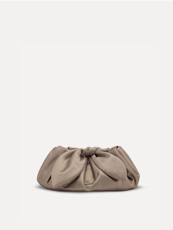 This exquisite clutch draws inspiration from the timeless art of fabric draping, transforming luxurious satin into an extraordinary accessory. The sculpted gathered design creates an effortlessly elegant silhouette with a beautifully voluminous bow detail that makes a sophisticated statement. This vintage-inspired evening bag combines timeless charm with modern functionality, featuring a gleaming chain that adds contemporary contrast for versatile wear.