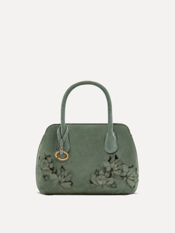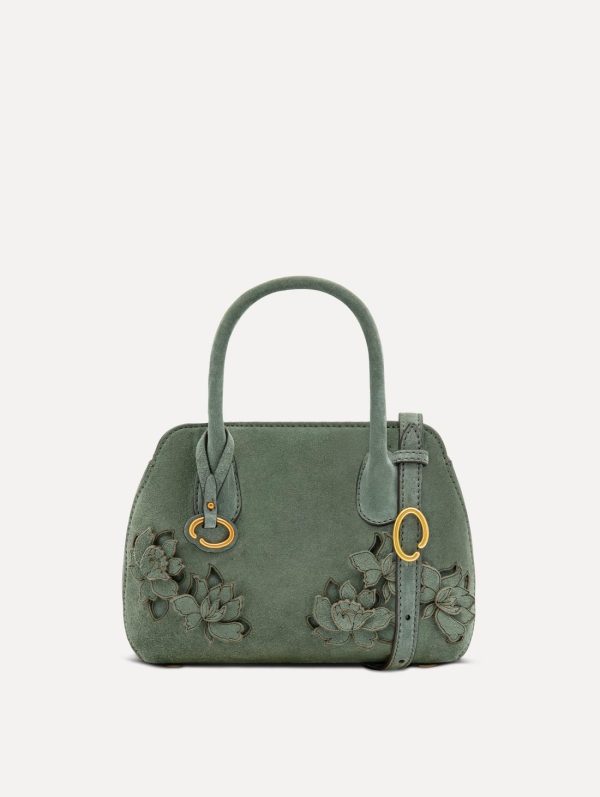 Discover the exquisite seasonal poppy motif artfully brought to life on The Mini Ivy handbag through precision laser-cut craftsmanship. This elegant bag features a surprisingly spacious interior compartment enhanced by versatile top handles and a removable shoulder strap for multiple styling possibilities. Beautifully detailed with signature Oscar de la Renta ‘O’ emblems on both the hangtag and magnetic closure, this design pays subtle tribute to the brand’s heritage while the gracefully curved seams mirror the iconic logo’s elegant silhouette.