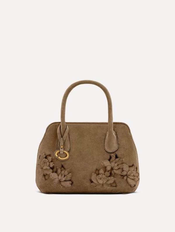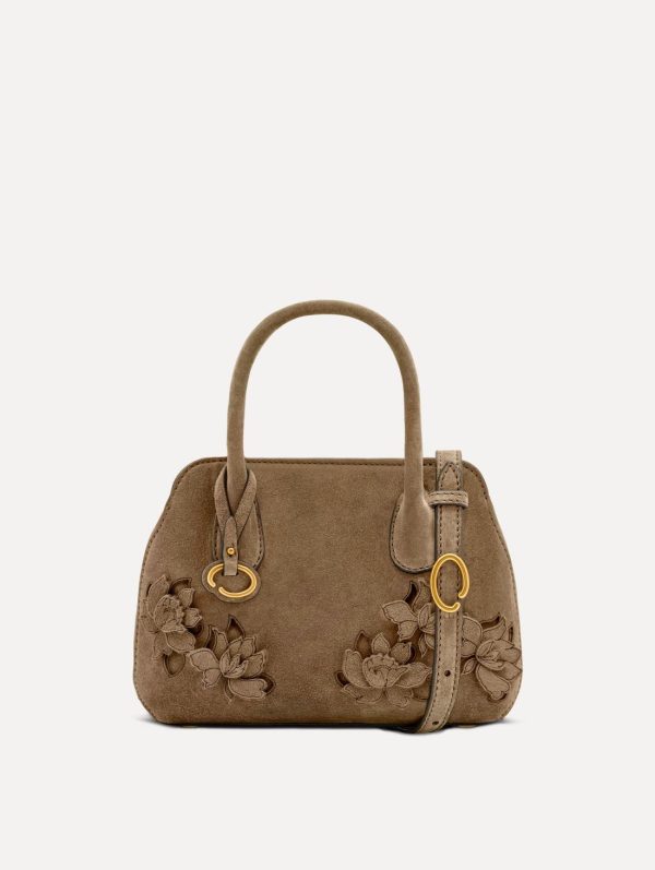 Experience the exquisite craftsmanship of our seasonal poppy motif, meticulously brought to life on The Mini Ivy handbag through precision laser-cut detailing. This beautifully compact bag features versatile carrying options with its elegant top handles and convenient removable shoulder strap. Signature Oscar de la Renta ‘O’ emblems adorn both the hangtag and magnetic closure, offering a subtle yet sophisticated tribute to the brand’s heritage. The bag’s gracefully curved seams mirror the iconic logo shape, creating a cohesive design statement.