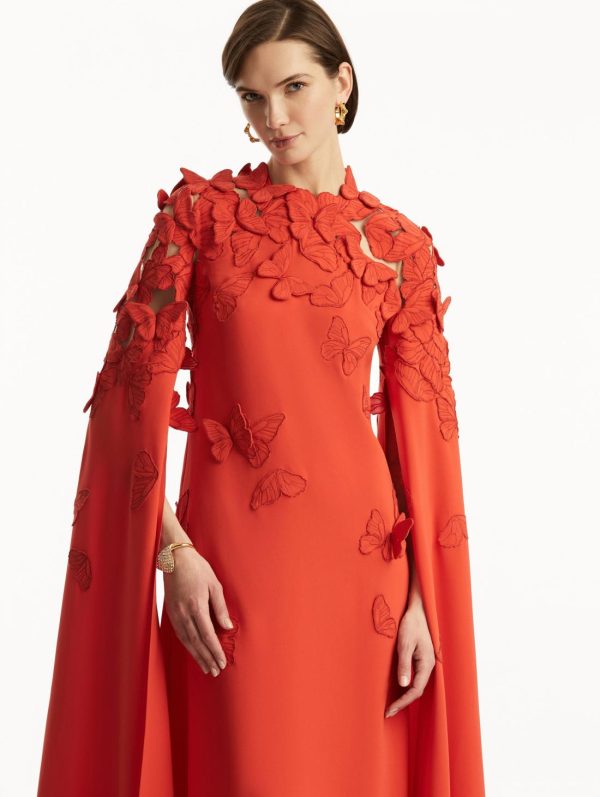 Women’s Butterfly Embroidered Carnelian Silk Caftan | Oscar de la Renta