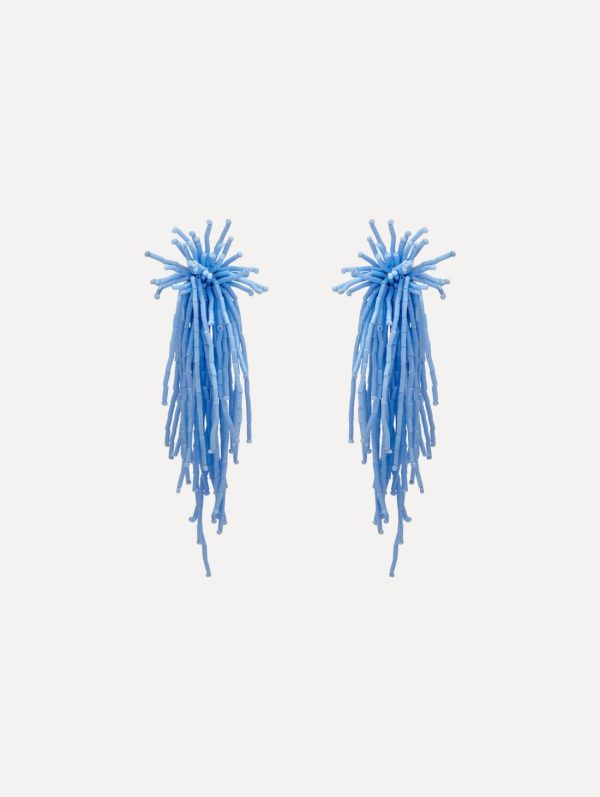 Make a stunning statement with these exquisite beaded tassel earrings that capture the brilliant energy of fireworks. The cascading design features vibrant denim blue hues and intricate beadwork that creates beautiful movement with every step.