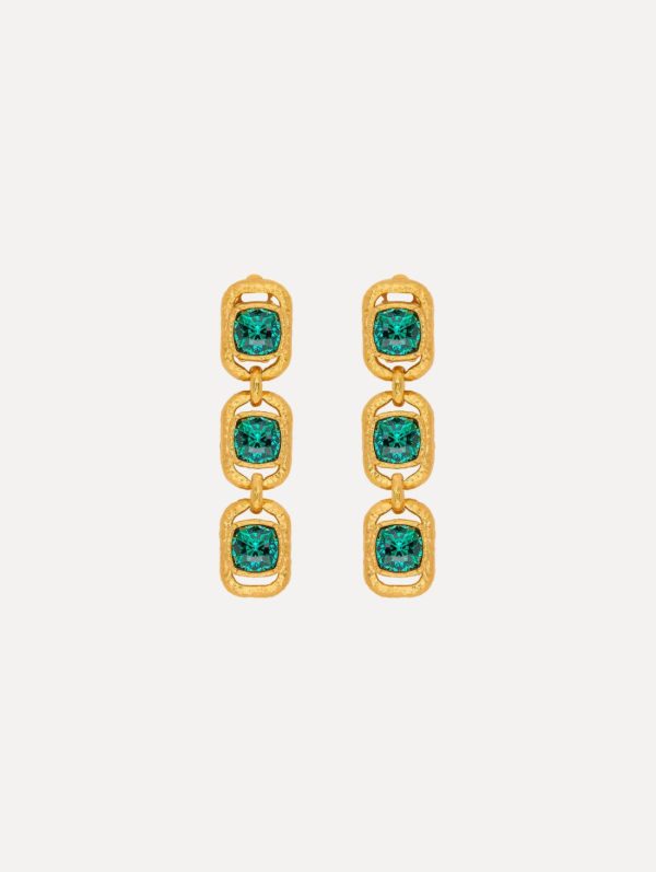 Make a sophisticated statement with these elegant drop earrings that masterfully blend bold design with timeless appeal. The precisely cut cushion crystals, set within gracefully contoured rectangular frames, create dazzling light reflection from every angle. Perfectly complements our matching bracelet and necklace collection for a complete luxury jewelry set.
