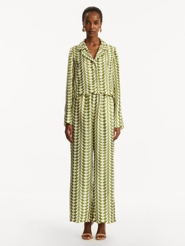 Women’s Fern & Ivory Geometric Print Silk Blouse | Oscar de la Renta