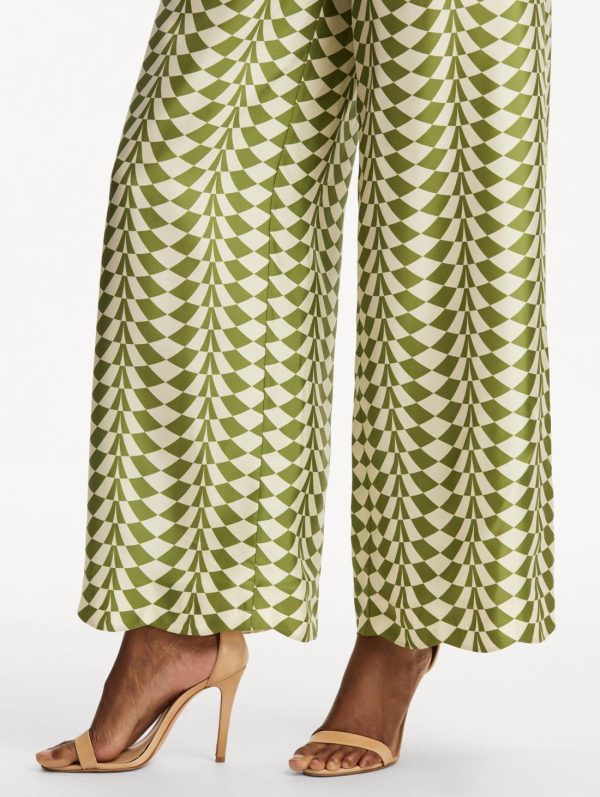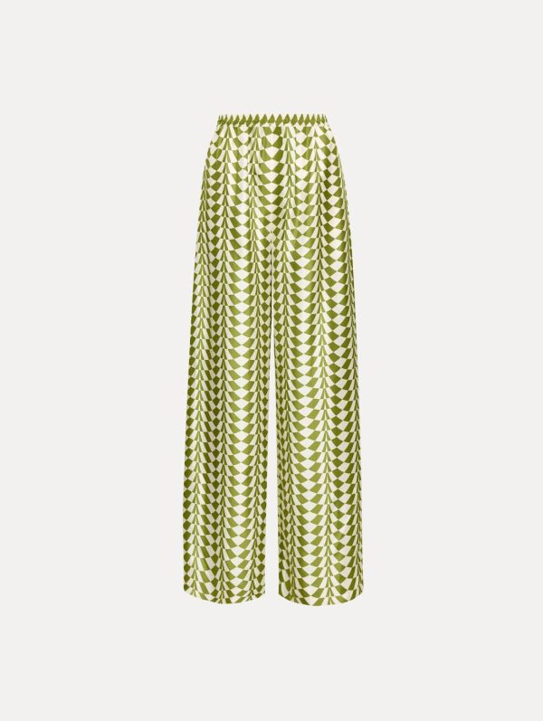 Elevate your daytime wardrobe with these exquisite silk twill wide-leg pants featuring a captivating geometric pattern. The fluid, relaxed silhouette and vibrant design create effortless sophistication that pairs beautifully with our coordinating blouse for a complete luxury look.
