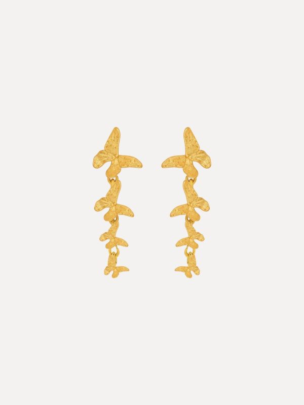 These stunning gold butterfly drop earrings feature a graceful cascade design with beautifully arranged butterflies that appear to float effortlessly. Perfectly complements our matching ring or bracelet collection.