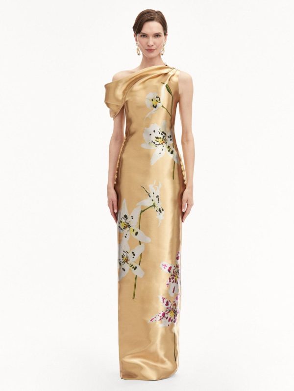 Experience the future of luxury fashion with our Pre-Spring 2025 collection, featuring the House’s groundbreaking gold metal organza innovation. This stunning column gown showcases an exquisite slipper orchid motif that celebrates the collection’s signature botanical theme.