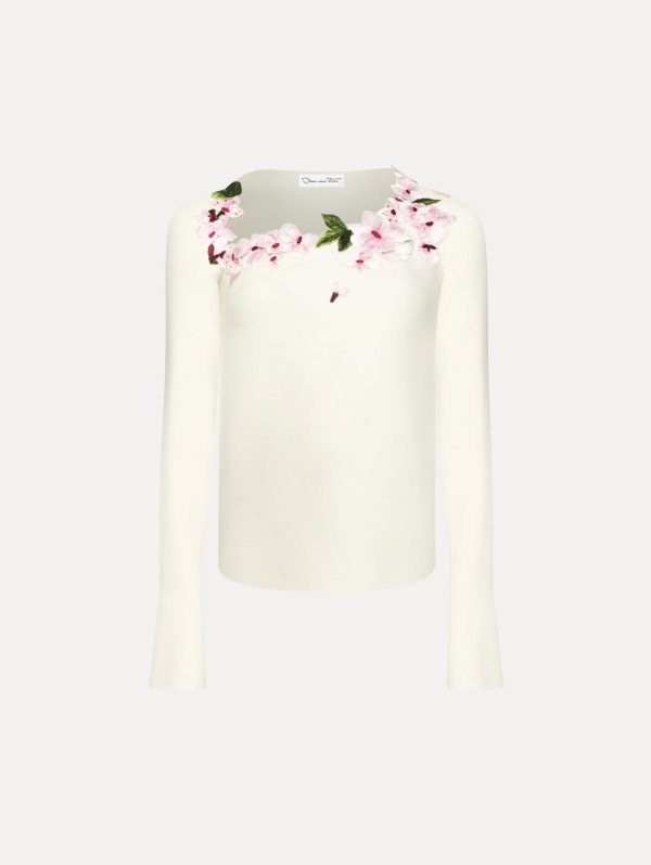 Experience timeless elegance with this exquisite silk georgette blouse in a sophisticated ivory hue. Delicate cherry blossom embroidery adorns the square neckline, creating a stunning focal point that elevates any ensemble. Featuring graceful long sleeves, this versatile piece effortlessly transitions from daytime refinement to evening sophistication.