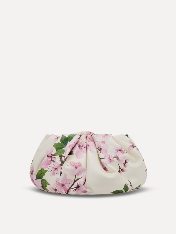 This exquisite clutch draws inspiration from the timeless art of fabric manipulation, where meticulous draping elevates premium materials into a statement piece. The sculpted yet fluid silhouette captures the graceful elegance of intentionally wrapped fabric, with artful gathers culminating in a beautifully dramatic bow. A sophisticated nod to vintage evening styles, this design blends classic charm with contemporary appeal through its polished chain accent.
