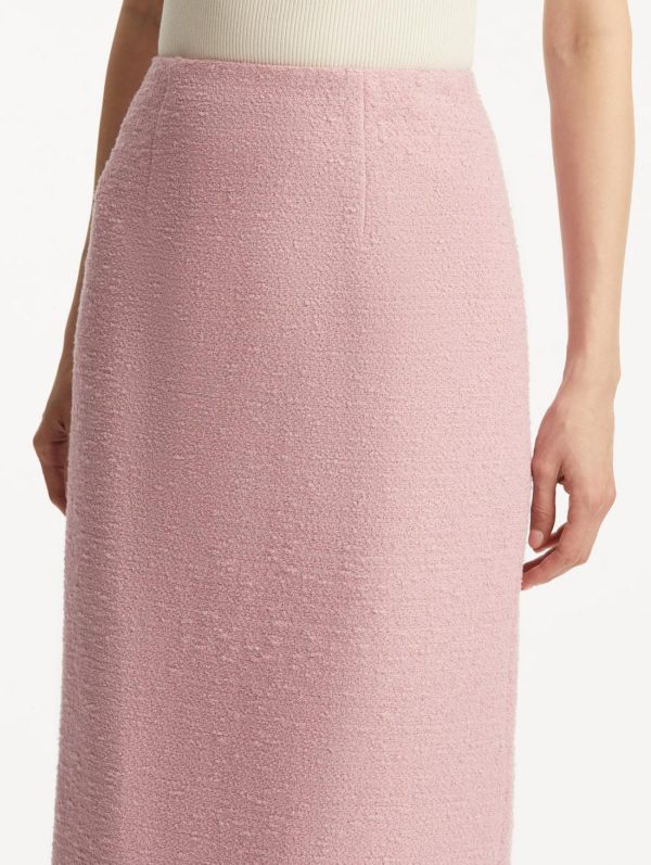 Crafted from premium cotton-wool tweed in a beautiful lily hue, this skirt delivers sophisticated elegance that transitions effortlessly from office to evening. The high-waisted design creates a flattering silhouette that elongates your figure, while the classic pencil cut provides versatile styling options for your professional wardrobe.