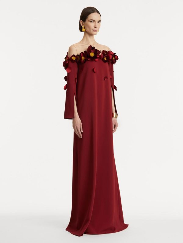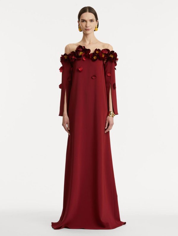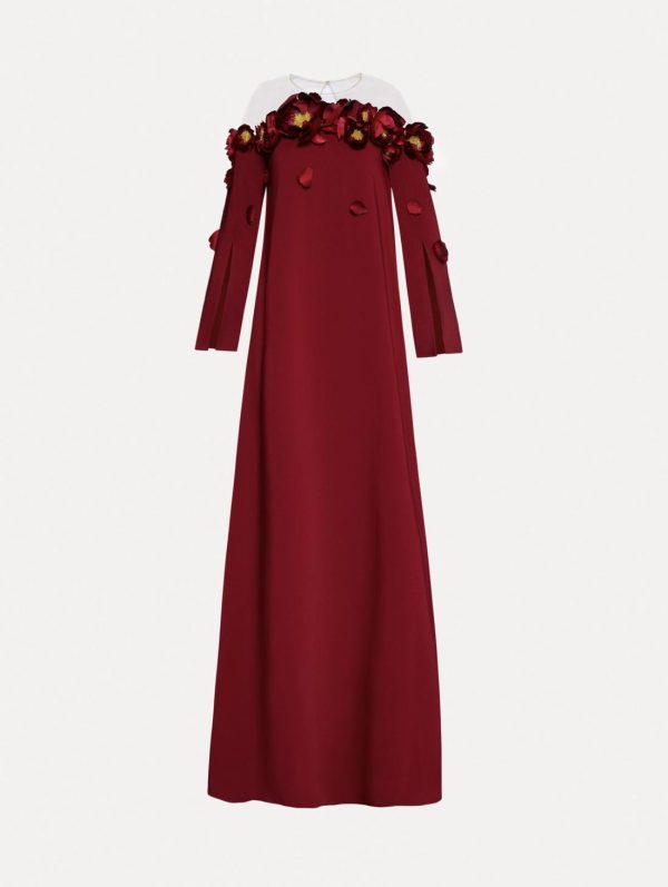 Women’s Peony Appliqué Illusion Neck Caftan in Terracotta | Oscar de la Renta