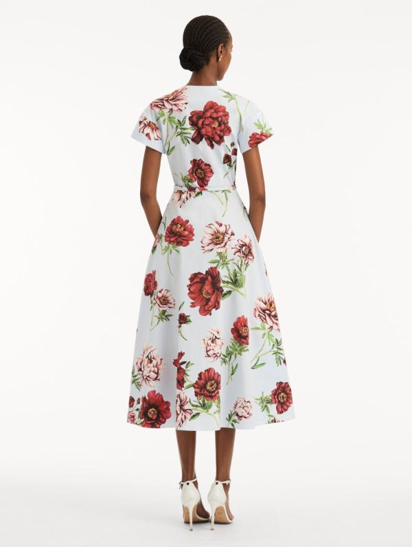 Adorned with exquisite blooming peonies, this premium cotton poplin dress showcases nature’s elegance in everyday style. The flattering silhouette features fashion-forward oversized short sleeves and a sophisticated V-neckline—creating a polished yet effortless look perfect for daytime occasions.
