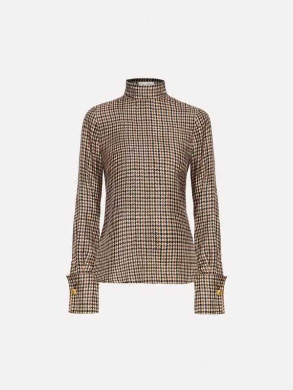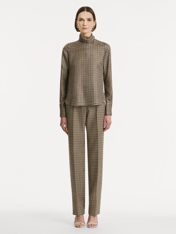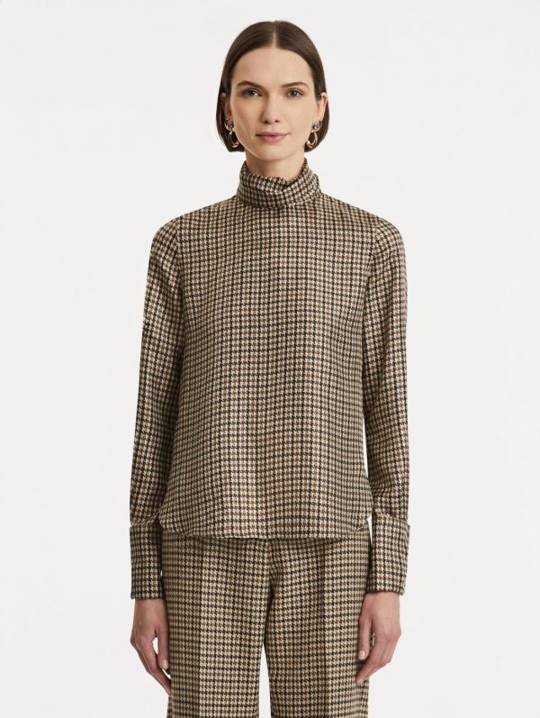 Experience timeless sophistication with this silk twill blouse featuring a classic houndstooth pattern. Designed with long sleeves and an elegant mock neck, this piece offers a beautifully fluid drape that moves effortlessly with you. Perfect for elevating both professional and social occasions with its refined aesthetic.