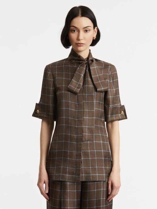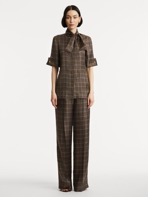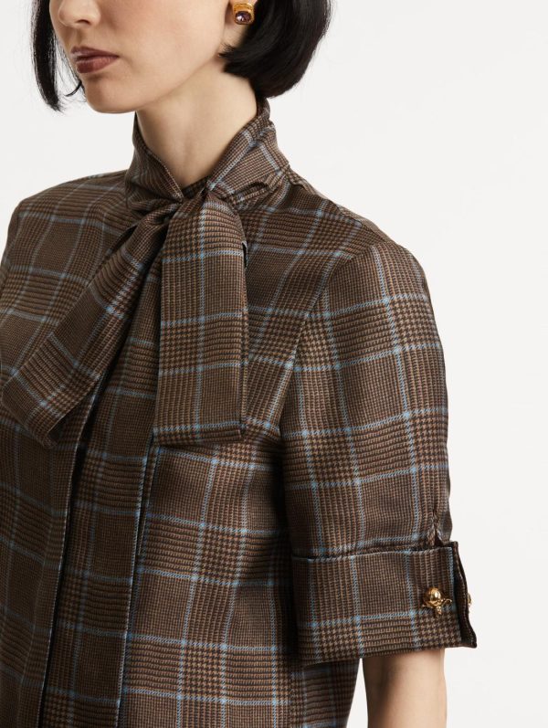 Women’s Prince of Wales Silk Blouse in Dark Brown/Blue | Oscar de la Renta