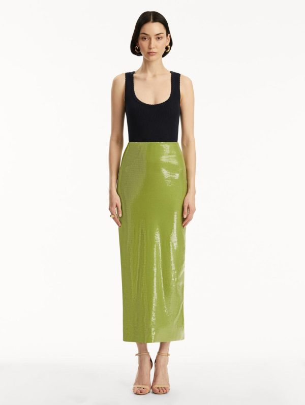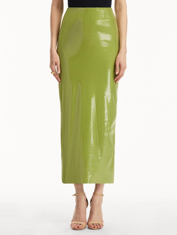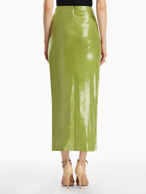 Experience the house’s innovative new fabrication with this light-catching sequin jersey pencil skirt. The precision-tailored silhouette contours your figure beautifully while the delicate shimmer creates an enchanting luminous effect. Perfectly pairs with our coordinating blouse for a complete elegant look.
