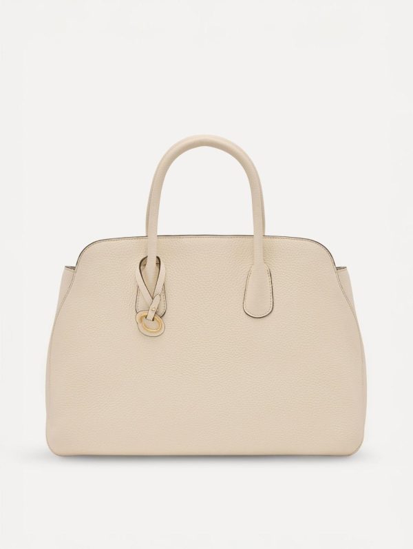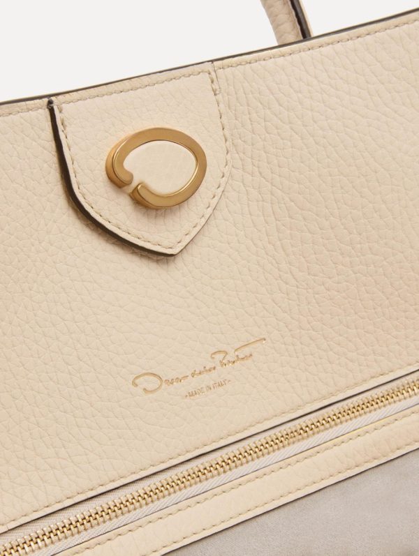 Experience the perfect blend of elegance and functionality with this stunning handbag, designed with a roomy main compartment that effortlessly accommodates your essentials. The versatile carrying options include both top handles and a detachable shoulder strap, allowing you to transition seamlessly from day to evening. Signature Oscar de la Renta O emblems adorn both the hangtag and magnetic closure, while the bag’s gracefully curved seams mirror the iconic logo’s elegant lines, creating a sophisticated tribute to the brand’s heritage.