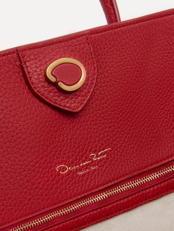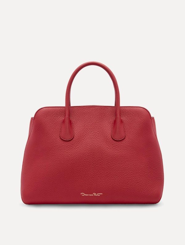 Experience the perfect blend of elegance and functionality with this meticulously crafted handbag, designed for the modern woman who demands both style and practicality. The spacious interior compartment offers generous storage, while the versatile top handles and detachable shoulder strap provide multiple carrying options to suit any occasion. Signature Oscar de la Renta O emblems adorn both the hangtag and magnetic closure, creating a sophisticated tribute to the brand’s heritage. The bag’s gracefully curved seams mirror the iconic logo shape, adding a touch of refined design excellence.