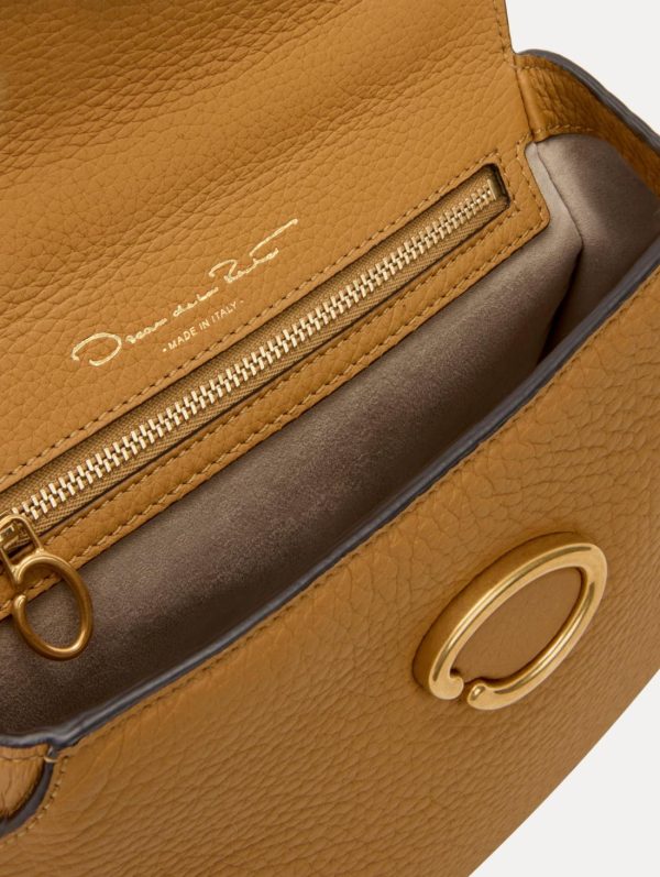 This beautifully compact version of an iconic design masterfully blends timeless sophistication with everyday functionality, featuring a surprisingly roomy main compartment with both a top handle and removable shoulder strap for versatile carrying options. Showcasing Oscar de La Renta’s signature O emblem on the decorative bag tag and a discreet magnetic closure, this exquisite piece radiates luxury in every carefully considered detail. Finished in this season’s must-have signature hue that complements any outfit effortlessly.