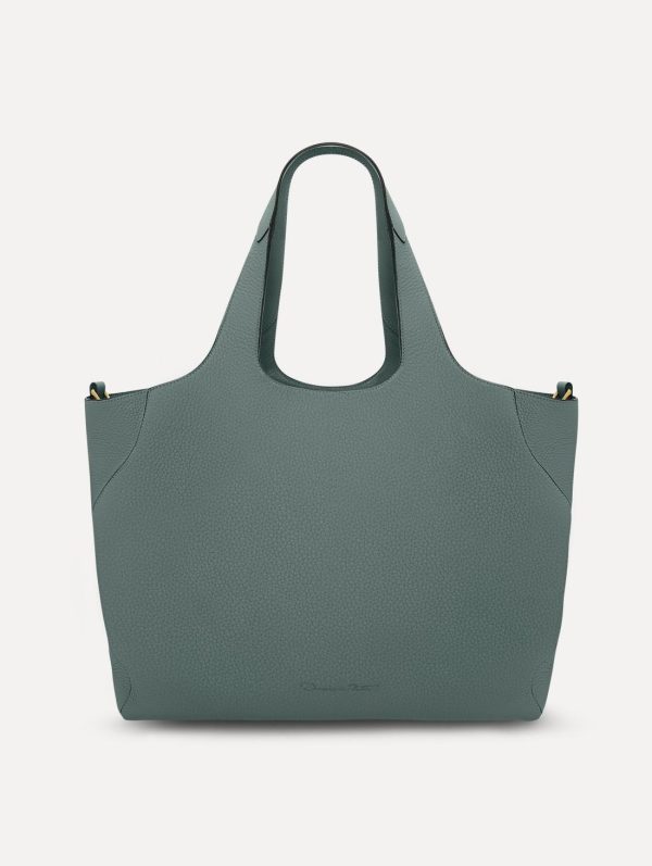 Experience exceptional craftsmanship with this premium full-grain pebbled leather tote that masterfully combines sophisticated style with everyday functionality. This versatile bag offers two distinct carrying options: wear it open for easy access to your essentials or secure it with the clasp for protected carrying. The signature Oscar de la Renta ‘O’ emblem at the clasp adds a touch of luxury, while the bag’s elegant curved seams beautifully mirror the brand’s iconic logo design.