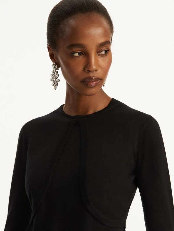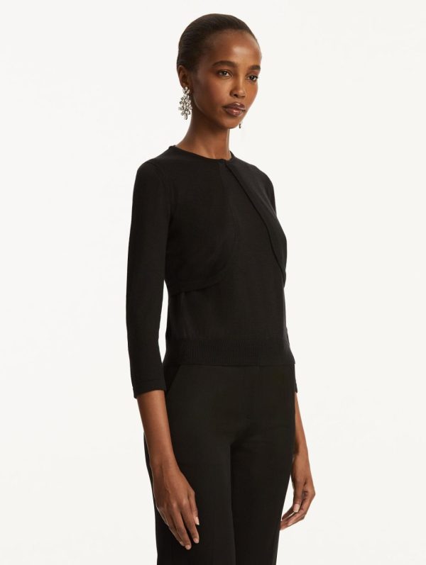 Elevate your wardrobe with this luxurious wool-blend bolero, crafted to become your essential layering companion. Designed in a sophisticated black hue, this piece features a gracefully curved hem that enhances your silhouette with timeless elegance.